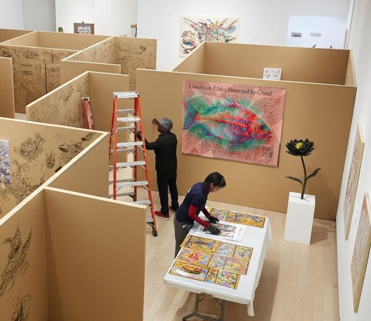 Artista de herencia japonesa-peruana, con trayectoria en exposiciones nacionales e internacionales, residencia artística en Palacios House of Arts, colaboraciones institucionales en la Embajada Suiza, las Fundaciones: León Carrillo, Sonría y Cisneros